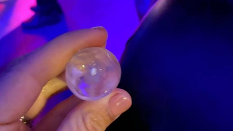 “Ayer en el Abolengo de Guadalajara fuimos 10 amigas y yo a festejar una despedida de soltera Llegamos, nos atendieron súper bien, nos trajeron la botella que pedimos, los servicios, y nos empezaron a servir las bebidas. Mi vaso sabía raro y el de otra amiga igual. Empezamos a checar los hielos y nos encontramos esto”: era un hielo con una pastilla adentro.