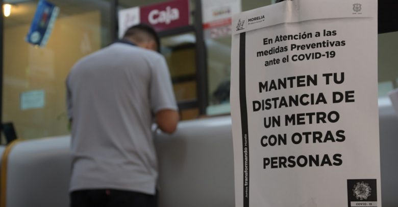 Con el fin de prevenir y proteger a la ciudadanía que acuda a módulos a realizar el pago de sus contribuciones municipales, la Tesorería de Morelia instruyó la aplicación distancia segura en filas y reforzó las medidas de higiene de sus instalaciones, además de orientar a la población mediante folletos informativos contra el coronavirus COVID-19.