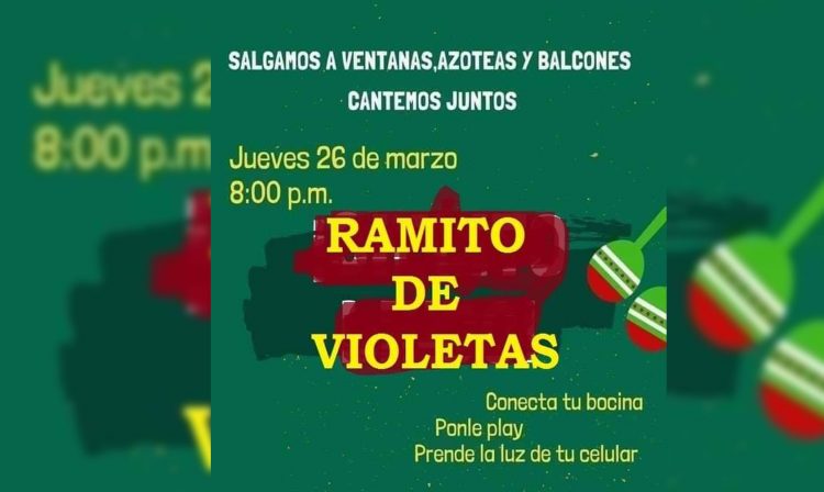 El llamado detalla que quienes quieran participar en el acto, salgan a sus respectivas azoteas o de ser el caso, balcones o ventanas el próximo jueves 26 de marzo y en punto de las 8 de la noche, armados con aparatos de sonido, se entone al mismo tiempo «Ramito de Violetas».