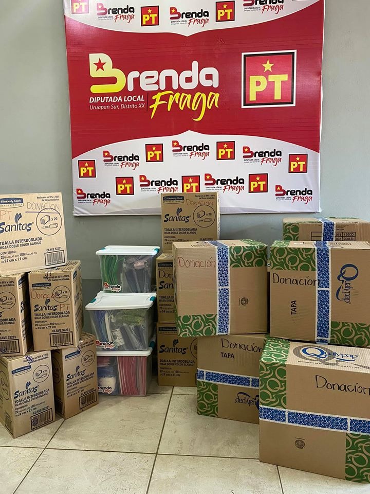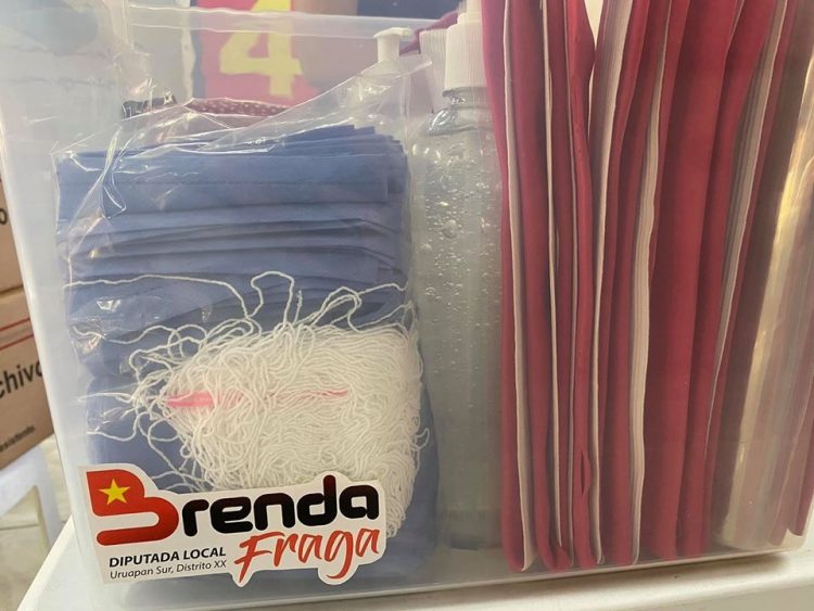 Así mismo, Brenda Fraga Gutiérrez, armó cajas, marcadas con su nombre, con cubrebocas y gel antibacterial, los cuales según sus redes sociales se estarán entregando a los hospitales rurales, en ninguna fotografía se aprecia ella entregando los productos.