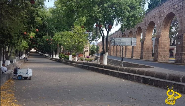 Son las 4 de la tarde de este Viernes Santo del 2020, el sol cae a plomo, es un día bastante caluroso en la capital michoacana, y don Gabriel tiene la mirada perdida en el horizonte de cantera rosa que le ofrece el Acueducto, sentado en la bancada de piedra de la calzada de San Diego, la cual luce semivacía, igual que el resto de la ciudad, cuyos habitantes en gran medida, van aprendiendo a quedarse en casa ante la amenaza pandémica del COVID -19.