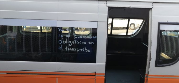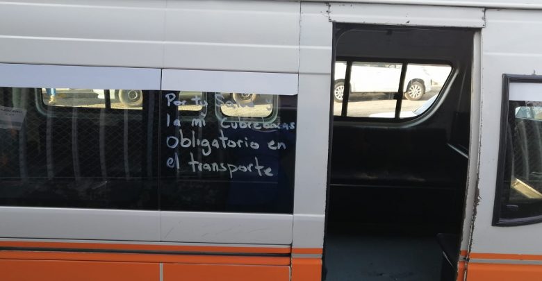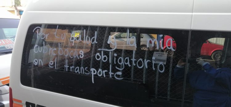 Algunas de las unidades que se han unido a esta petición ha sido la ruta naranja, en algunas unidades se puede leer el mensaje “por tu salud y la mía cubrebocas obligatorio en el transporte público”.