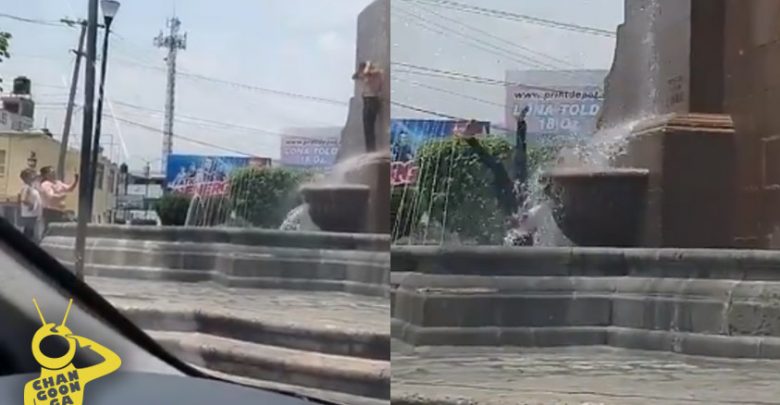 Por medio de redes sociales se ha viralizado un video de una moreliana que se encuentra posando en la fuente que se encuentra sobre la Avenida Morelos Norte, mejor conocida como El Pípila, pero, además, de la mojada la joven cae y seguramente se llevó un fuerte golpe.