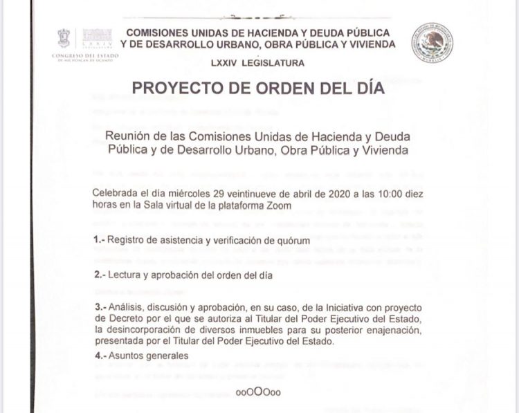 En la sesión tratarán la solicitud que envió el Gobernador Silvano Aureoles Conejo en el 2019, para la desincorporación y venta de varios bienes inmuebles del Estado.