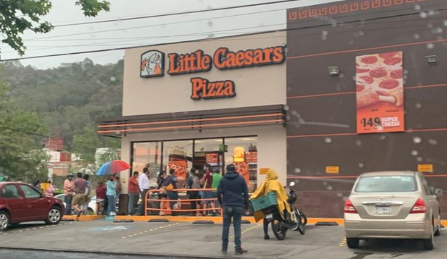 A pesar de estar en medio de una contingencia sanitaria, para celebrar a sus bendiciones decenas de padres de familia, junto con repartidores de comida, no les importó el riesgo de contagio y se atrevieron a abarrotar las sucursales de Little Caesars en busca de pizzas para los festejos familiares del Día de la Niña y el Niño.