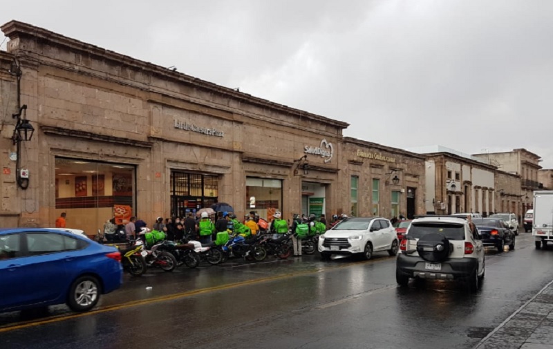 En la capital michoacana por ejemplo, lla lluvia no importó y las sucursales sobre avenida Madero y av. Camelinas lucían full. Entre motociclistas y repartidores de Uber Eats que esperaban su turno para llevarse una pizza.