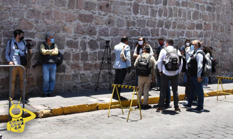 Luego de esperar más de 60 minutos bajo el sol, personal de comunicación del estado, informó a los periodistas y gráficos la entrada podría demorar una hora más, por lo que se les invitó pasar a las oficinas de prensa del gobierno para que no estuvieran de pie y soportando el intenso calor que según marca el termómetro es de 30 grados centígrados.