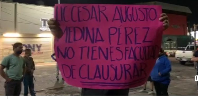 “A las grandes empresas, a Parísina, a Coppel, a Elektra sí los dejan estar abiertos y a nosotros que vendemos cosas esenciales, nos clausuran, eso no es justo!” exclamó una de las manifestantes.
