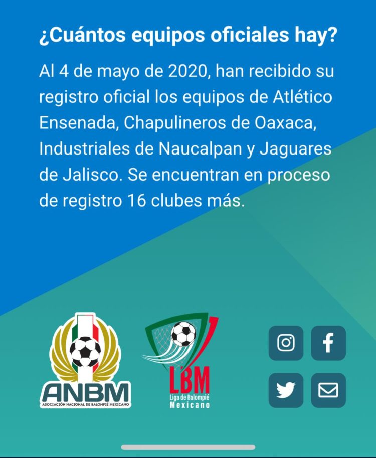 Al 4 de junio han recibido su registro oficial el Atlético Ensenada, Chapulineros de Oaxaca, Industriales de Naucalpan y Jaguares de Jalisco, encontrándose en espera 16 equipos más.
