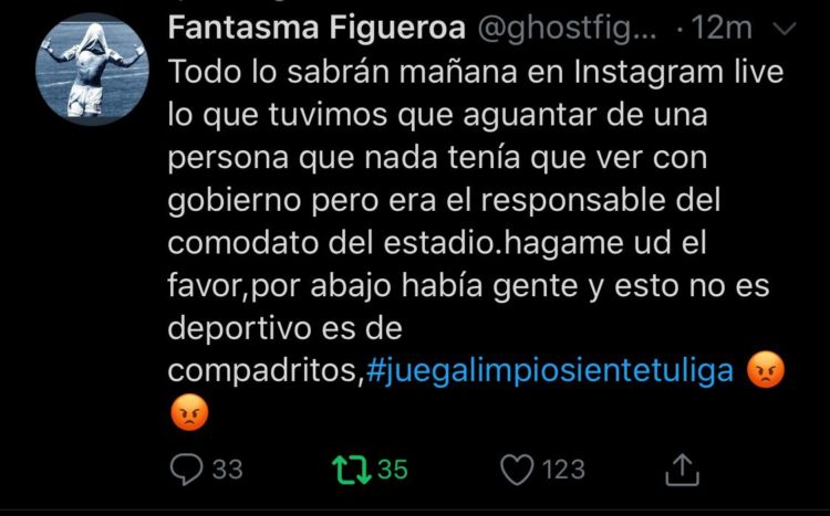 “Hágame ud el favor, por abajo había gente y esto no es deportivo es de compadritos,#juegalimpiosientetuliga ??”, twitteó.