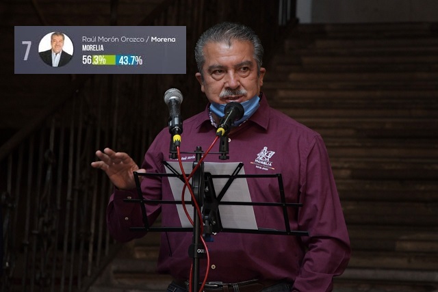 Luego de la medición, el 56.3% de personas consideraron que Raúl Morón sí las está tomando, mientras que los 43.7% opinan lo contrario; el munícipe permanece tan sólo por debajo de sus colegas: Enrique Rivas Cuéllar, de Nuevo Laredo; Manolo Jiménez Salinas, de Saltillo; Enrique Vargas Del Villar, de Huixquilucan; Pablo Lemus Navarro, de Zapopan; Célida López Cárdenas de Hermosillo, y María Eugenia Campos, de Chihuahua.