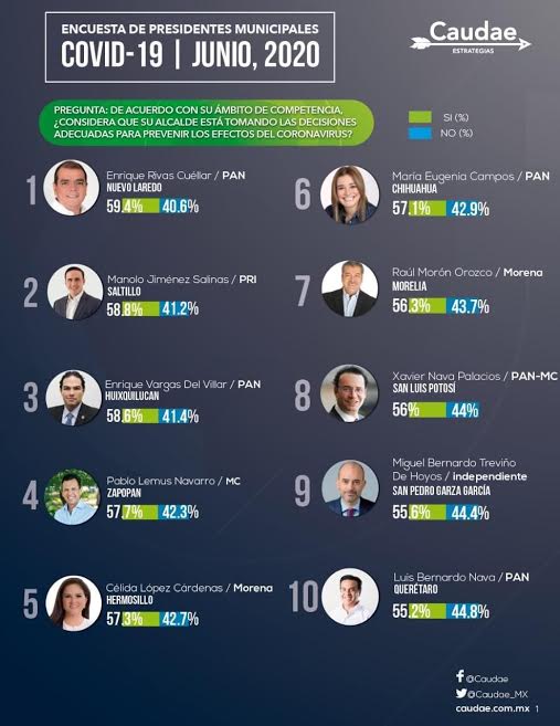 Según lo dio a conocer la Encuesta de Presidentes Municipales COVID-19 del mes de junio, y la cual fue elaborada por la empresa Caudae Estrategias, el munícipe moreliano logró colocarse en la séptima posición de la medición.