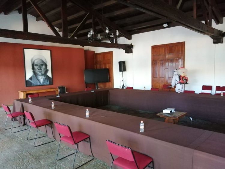 Dentro de los inmuebles sanitizados también se encuentra Casa de Gobierno donde vive el mandatario estatal, a la que le rociaron químicos por diversos espacios sobre todo a las áreas comúnes como salas y salones de juntas y reuniones.