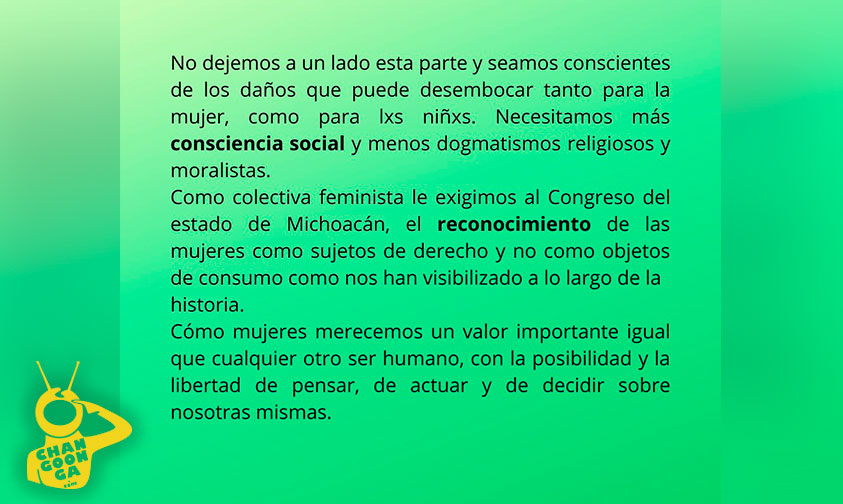 A través de varios mensajes por Twitter, la organización Libres Morelia, les pidió a las y los integrantes de la comisión de salud y de justicia, encargadas de dictaminar las iniciativas para despenalizar el aborto, legislen bajo el reconocimiento de los derechos de la mujer.