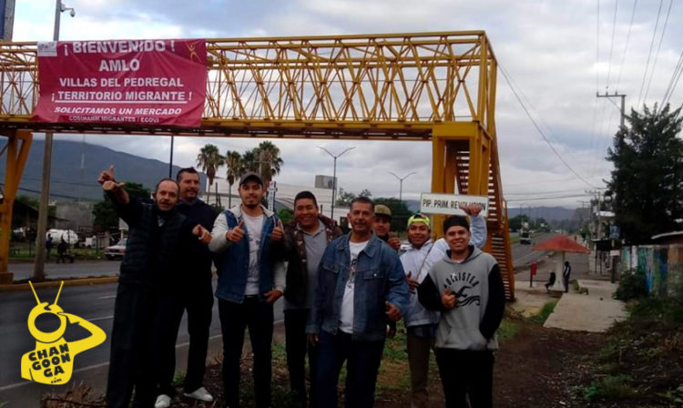 “Bienvenido AMLO, Villas del Pedregal, territorio migrante, solicitamos un Mercado”, se leía en la consigna.