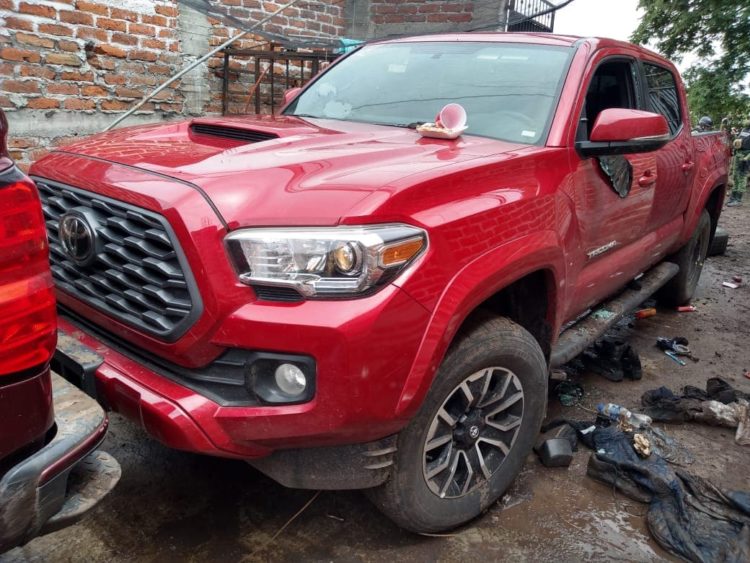 En cuanto a los vehículos asegurados se dijo que son; una camioneta Toyota tipo Tacoma, color rojo sin placas sin reporte de robo, una camioneta Chevrolet tipo Cheyenne, color guinda son placas, la cual contaba con reporte de robo y una camioneta Toyota tipo Tacoma, color azul, sin placas y sin reporte de robo.