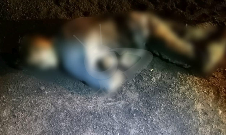 La víctima está en calidad de desconocido, siendo un muchacho de entre 20 y 25 años de edad, el cual vestía pantalón de mezclilla, así como una sudadera color negro y tenis color morado, el cual quedó tirado boca abajo en la rústica vialidad.