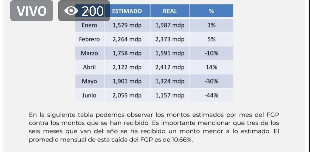 Michoacán dejó de recibir más de un mil 600 millones de pesos en lo que va del primer semestre anual, como lo muestra la gráfica presentada a los medios locales, esta mañana: