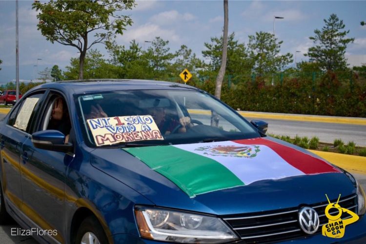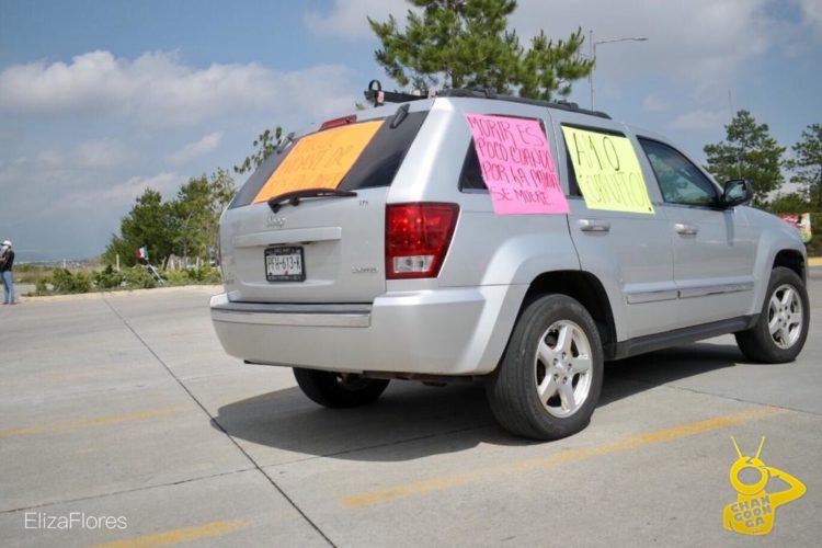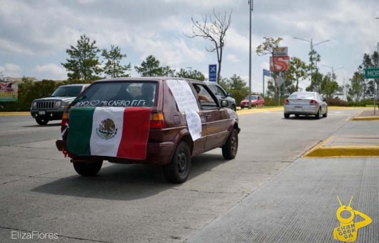Con banderas de México que tenían amarrado un moño negro y pancartas contra AMLO los vehículos se reunieron poco antes de las 11 de la mañana para iniciar una vez más el recorrido en protesta a las políticas con que Andrés Manuel López Obrador, esta gobernando al país.