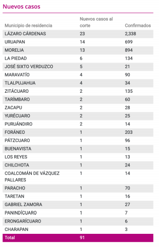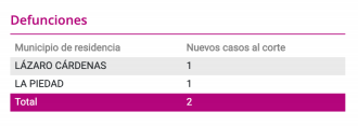 Las muertes se registraron en los municipios de Lázaro Cárdenas y La Piedad; hasta el momento van 5 mil 661 personas recuperadas de COVID-19.