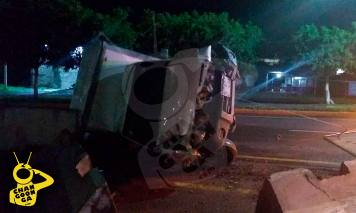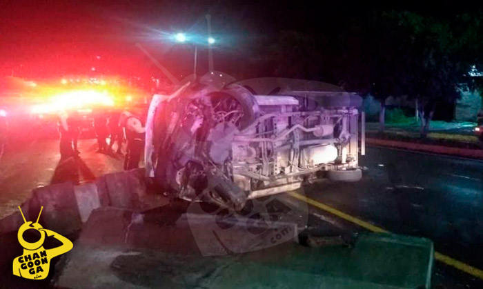 Sobre la avenida Madero Oriente se registró el choque de una camioneta contra un muro de contención central. Tras el impacto el vehículo acabó volcado; sólo hubo daños materiales, mencionó la Policía.