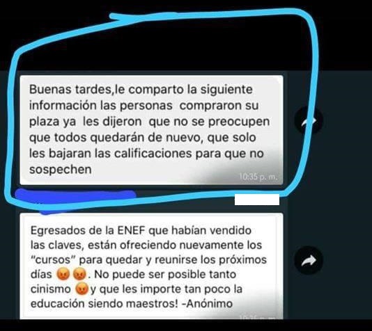 Cabe destacar que mediante redes sociales de profesores de las normales, comenzó a circular una imagen en días pasados donde se leía que los jóvenes que habían pagado “una plaza” dentro de las Normales del estado “volverían a quedar” en las listas de aceptados, y que en esta ocasión solo “modificarían las calificaciones” para que nadie sospechara.