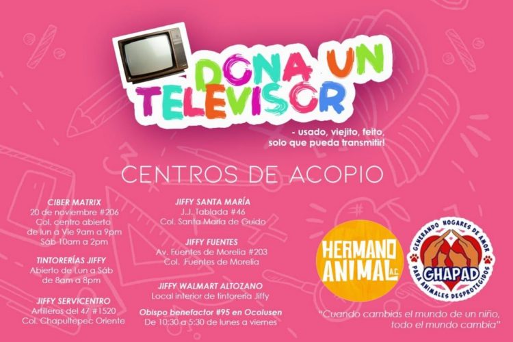 Es por ello que GHAPAD y Hermano Animal te invita a donar un televisor viejito o seminuevo que no necesites y que este en buenas condiciones.