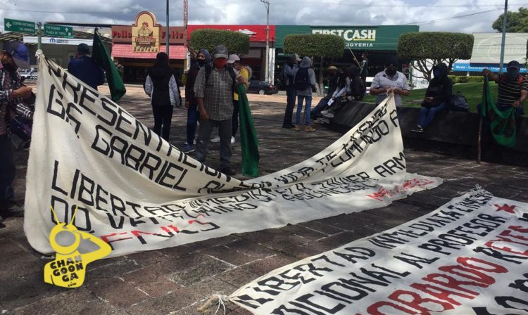 Integrantes del Frente Nacional de Lucha por el Socialismo se han reunido en el obelisco a Lázaro Cárdenas de donde pretenden salir sobre la Avenida Madero con rumbo al Palacio de Gobierno, en donde pedirán que se dé información sobre los desaparecidos.