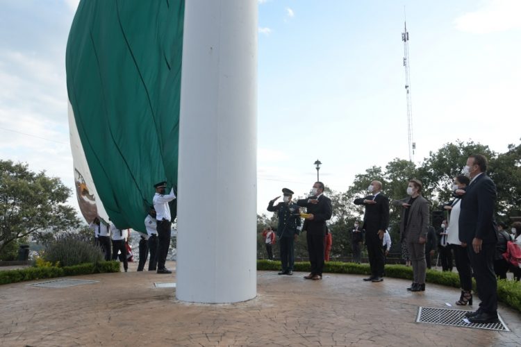 En aras de hacer partícipe a la sociedad en las fiestas patrias y actos cívicos en el mes de septiembre en Morelia y con apego a las normas de la nueva normalidad, el presidente municipal, Raúl Morón Orozco, encabezó el izamiento de la bandera monumental en la Plaza Héroes de la Independencia en compañía de autoridades de los tres niveles.
