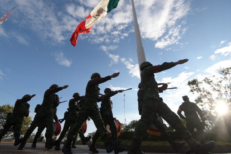 El alcalde, Raúl Morón, en compañía del secretario de Educación en el estado, Héctor Ayala Morales, el coronel de infantería Diplomado de Estado Mayor, Olegario Valera Hernández, la sindica, Labinia Aranda Ortega y el secretario del Ayuntamiento, Humberto Arróniz Reyes e integrantes de Cabildo, rindieron los honores correspondientes al lábaro patrio.
