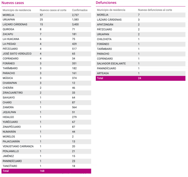 La capital michoacana se llevó el primer puesto de las ciudades que más casos nuevos y lamentables fallecimientos por coronavirus en las últimas 24 horas