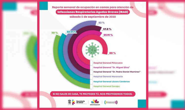 El reporte muestra que el Hospital General “Dr. Miguel Silva” se encuentra al 59.91 por ciento; el de Uruapan “Pedro Daniel Martínez”, al 57.8 por ciento; Maravatío, al 52 por ciento; Lázaro Cárdenas, al 32.31 por ciento y Zacapu al 30 por ciento.