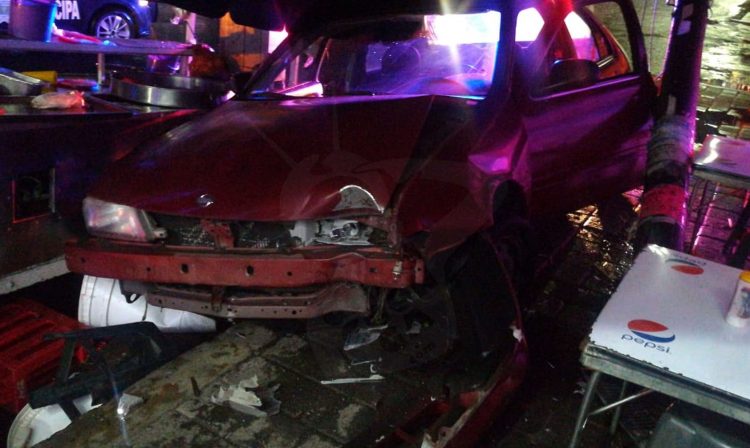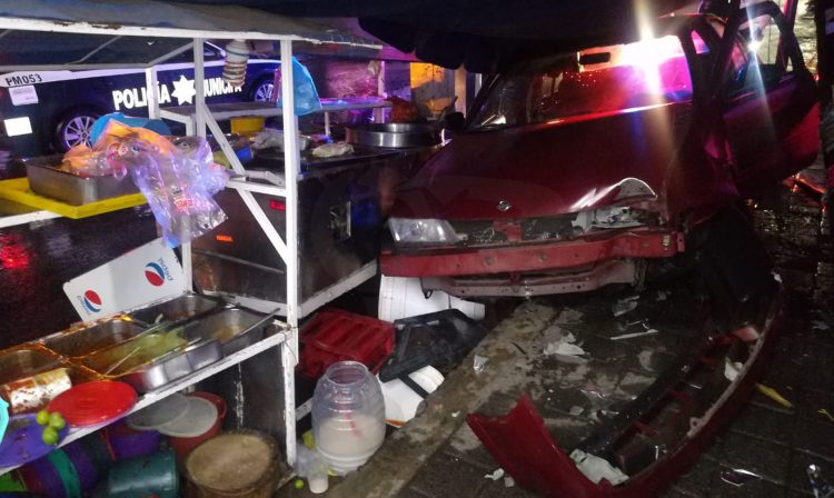 Las imágenes muestra que el automóvil impactó tan fuerte que derribó un poste de alumbrado que se encontraba en la esquina, el puesto además quedó severamente dañado al igual que el automóvil del que hasta el momento se desconocen sus placas.