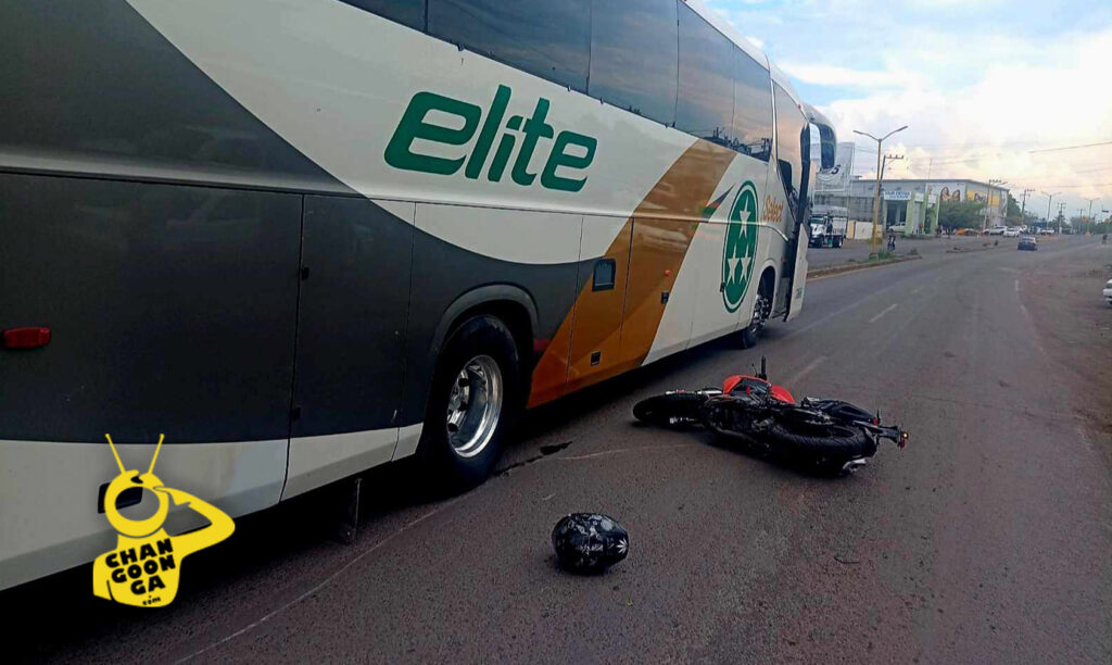Se pudo apreciar que la moto del finado corresponde a una de color rojo con negro, unidad que acabó en el costado derecho de un camón de la línea Élite, con número económico 7866, de color blanco y franjas grises y doradas.