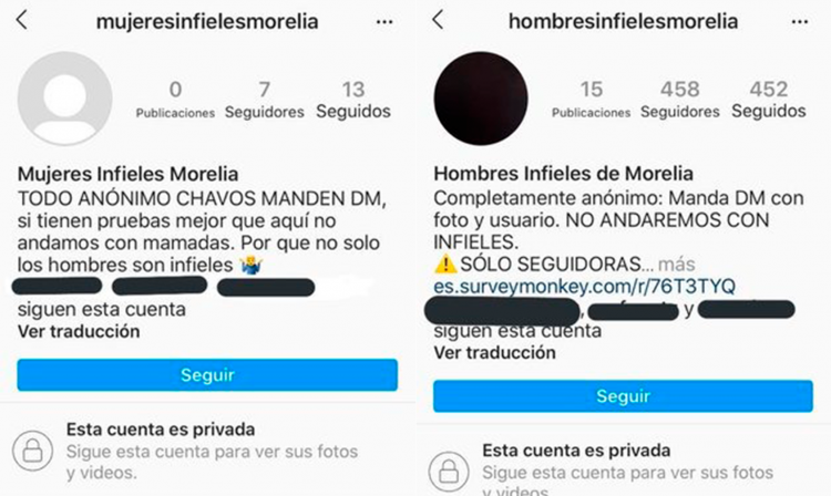 Ambas cuentas se encuentran privadas y tienen ciertas reglas pues, la cuenta de “hombres infieles morelia” sólo se aceptan cuentas de mujeres, mientras que en la cuenta de “mujeres infieles morelia”, sólo aceptan cuentas de hombres.
