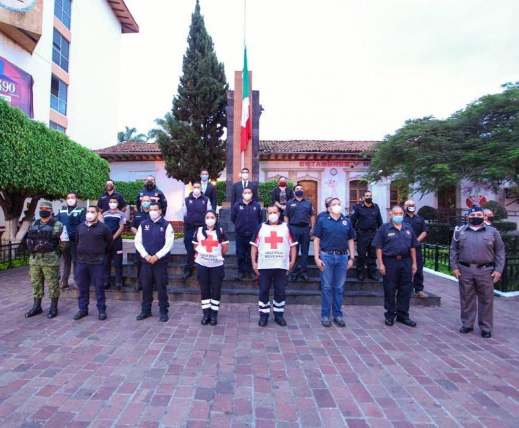 Al décimo noveno Izamiento del Pendón Tricolor también asistieron elementos de distintas corporaciones de auxilio. Estas actividades se llevaron a cabo en el marco del Día Nacional de la Protección Civil, que recuerda a la población a estar mejor preparados para enfrentar una contingencia derivada de la fuerza de la naturaleza.