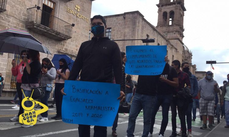Los ex alumnos de las escuelas normales, el día de hoy se manifiestan para pedir que se les asigne plazas a algunos alumnos de la generación 2019 y a los recién egresados del ciclo 2020, así como para exigir los pagos pendientes correspondientes que se les adeuda algunos de ellos, por un monto salarial de seis meses.