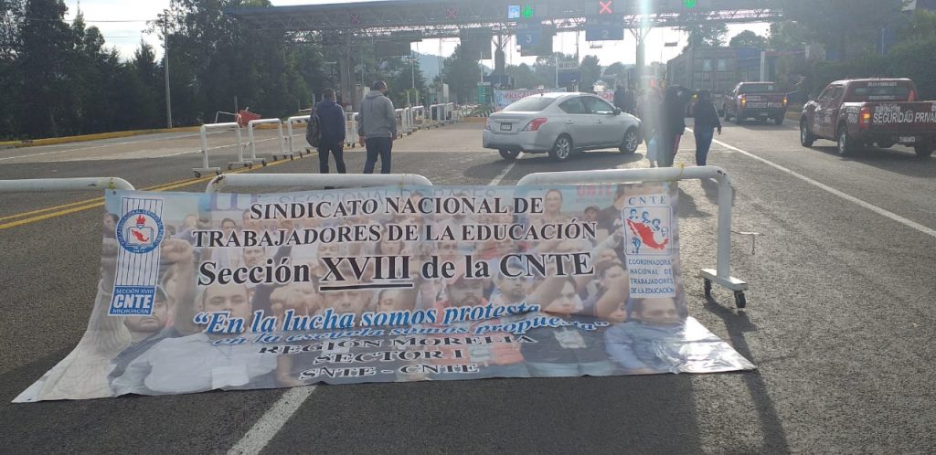 Este martes por la mañana integrantes de la Coordinadora Nacional de Trabajadores de la Educación se empezaron a reunir en las diferentes casetas de peaje en el estado de Michoacán, esto con la intención de exigir la liberación de presos políticos, pagos de prestaciones, entre otras cosas.