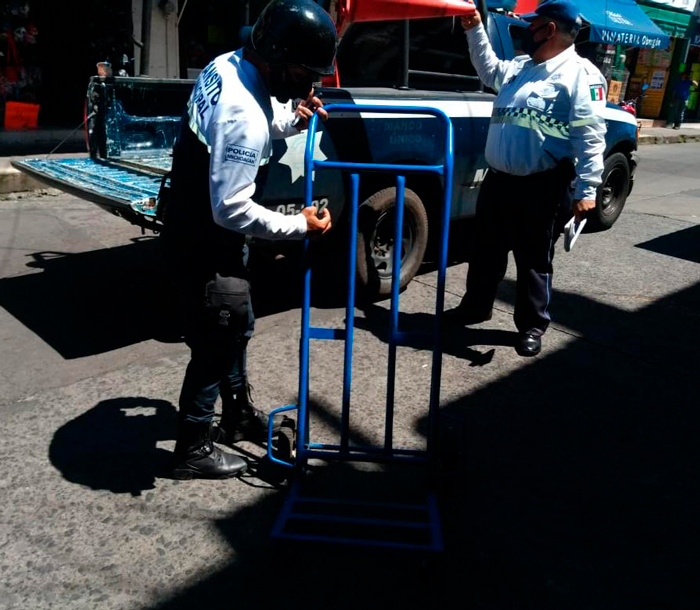 La Secretaría de Seguridad Pública Tránsito y Vialidad Municipal (SSPTyVM), da continuidad al Operativo de retiro de obstáculos de la vía pública.