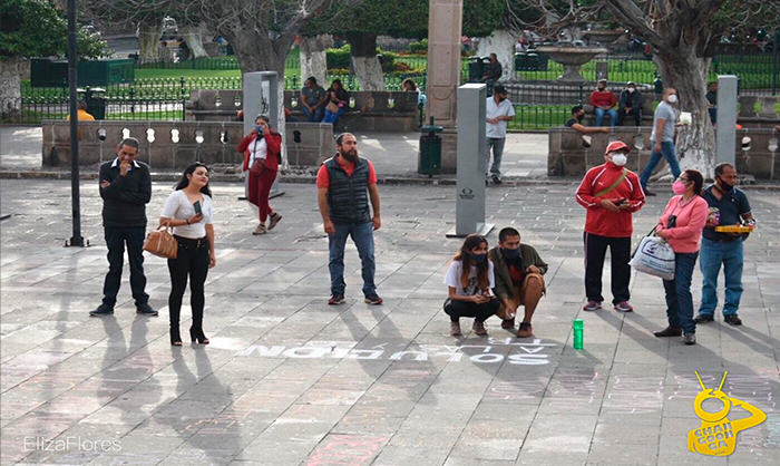 Las personas que caminan por el lugar se paran a observar a los jóvenes pintar los muros de catedral y el piso de la plaza, policías municipales se hicieron presentes en el lugar para pedir a los jóvenes que no rayaran las paredes de la iglesia, y se les invitó de forma amable a que se limitaran a intervenir la cantera del suelo.