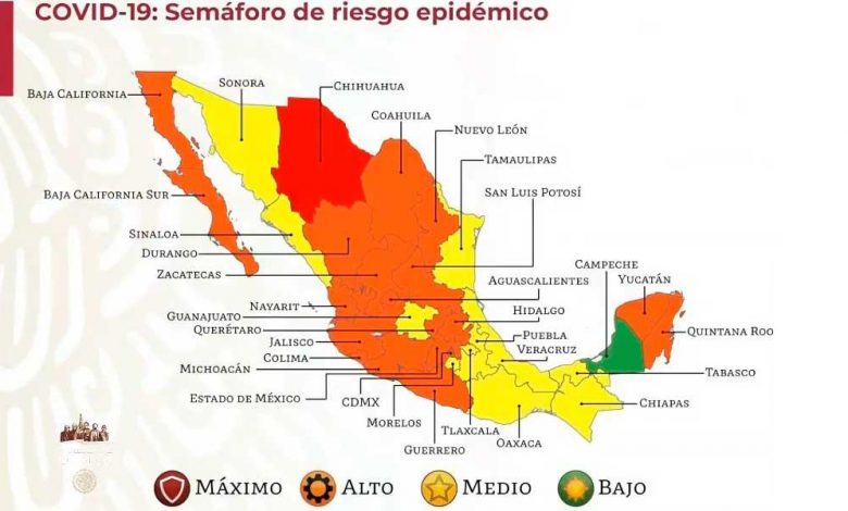 Chihuahua fue la entidad que incrementó su riesgo de alto a máximo, mientras que Baja California Norte, Baja California Sur, San Luis Potosí, Quintana Roo y Michoacán pasaron del amarillo al naranja.