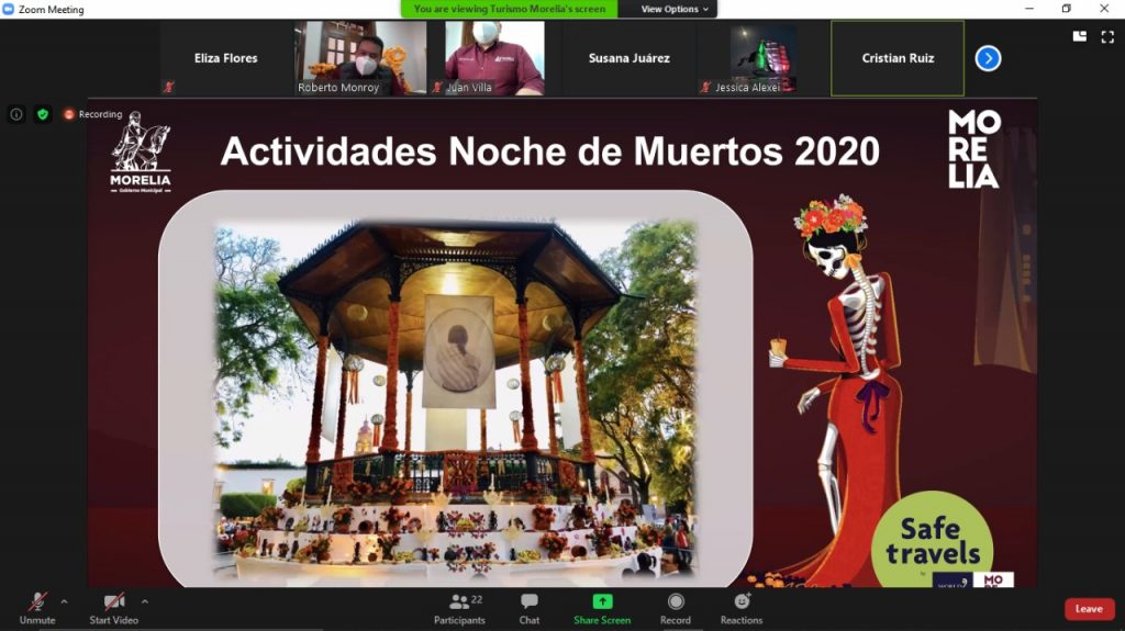 Roberto Monroy, Secretario de Cultura de Morelia esta mañana en una rueda de prensa virtual dio a conocer que ante la contingencia sanitaria no se podrán hacer concentraciones masivas de personas por lo que se canceló el desfile de catrinas y el concurso de altares, sin embargo se dice consciente de la importancia de no dejar pasar esta fecha tan significativa para el Estado de Michoacán, por lo que trabajan de la mano con artesanos y campesinos para montar un altar monumental en la Plaza de Armas, también dio a conocer que los panteones serán adornados con flores de cempasúchil, los empleados del H. Ayuntamiento serán los encargados de adornar las sepulturas.