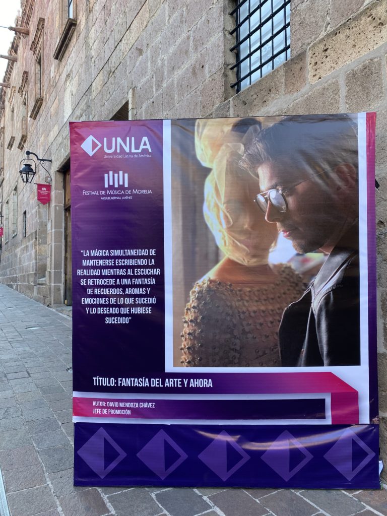 La muestra es resultado del concurso realizado por la institución educativa en la que participaron alumnos y personal de la Unla, y del cual se tomaron las 12 fotografías más votadas para ser expuestas en el Andador, en pleno corazón del Centro Histórico, “cómo decir que no cuando te invitan a sumarte a un evento que es emblema a nivel nacional de lo que es la cultura y el arte. a todos nos sorprende saber que Michoacán y Morelia es un referente, hace poco vi la promoción del Festival de Música de Morelia en cadena nacional, ¡cómo no sumarnos a estos esfuerzos!”, comentó Mariana Sosa Olmeda, rectora de la Unla.