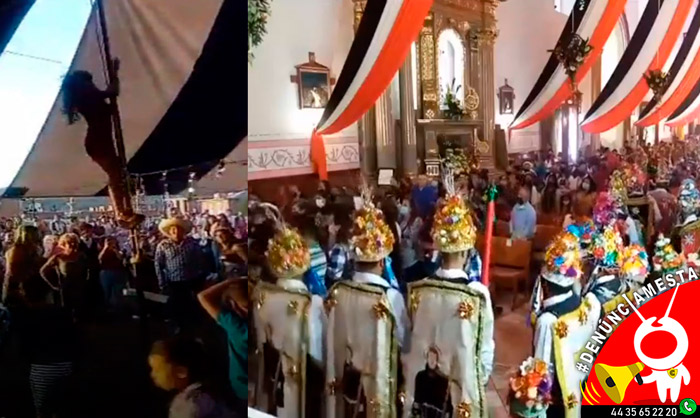 En la Parroquia de San Diego Alcalá, de Quiroga, Michoacán, se realizó la tradicional «Danza de los Moros» sin tomar medidas sanitarias correspondientes contra el COVID-19, denunció un usuario anónimo.