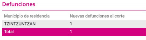 Las defunciones se redujeron, siendo sólo una la registrada por la Secretaría de Salud, la cual se suscitó en Tzintzuntzan.