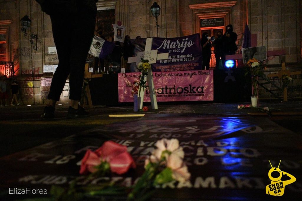 Concluyó diciendo “Este 25 de noviembre nosotras exigimos justicia, por todas las que nos han arrebatado y una vida libre de violencia para todas”, posterior a las últimas palabras las mujeres colocaron Alertas Alva, velas y flores en la puerta de Palacio de Gobierno.