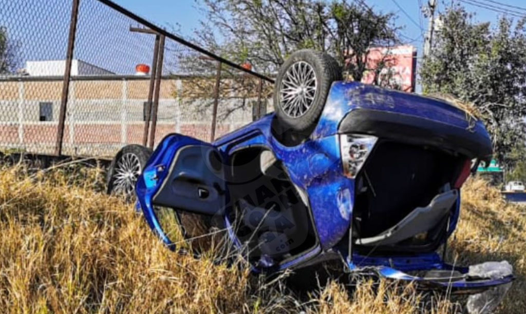 Autoridades de vialidad informaron que un carro compacto marca Renault tipo Clio volcó cerca de la desviación al Recinto Ferial, personal paramédico que llegó al lugar atendió a una joven de 24 años de edad que viajaba en la unidad y resultó lesionada.