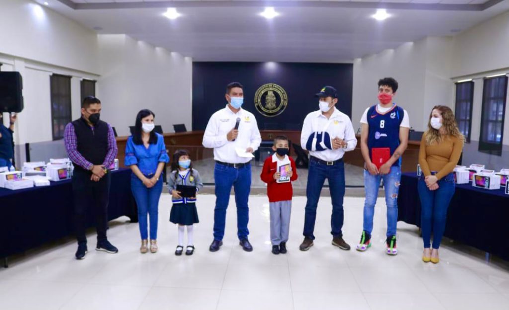 En este marco, la Autoridad Municipal también entregó tableta digital a estudiantes destacados en su desempeño académico, como es el caso de José Román García y de María Guadalupe Castillo Moreno, quienes agradecieron este apoyo al munícipe.