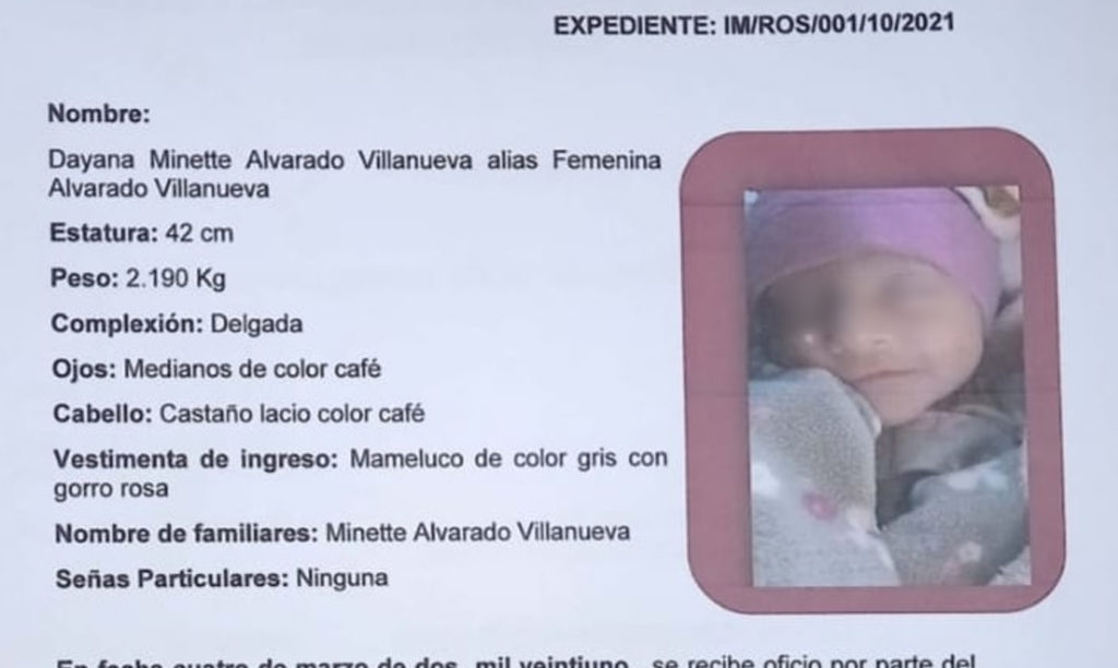 En la descripción de los hechos, se da a conocer que en el Hospital General de Playas de Rosario, Baja California, la mujer, identificada como Minette, dio a luz a una niña el 4 de marzo del presente año.