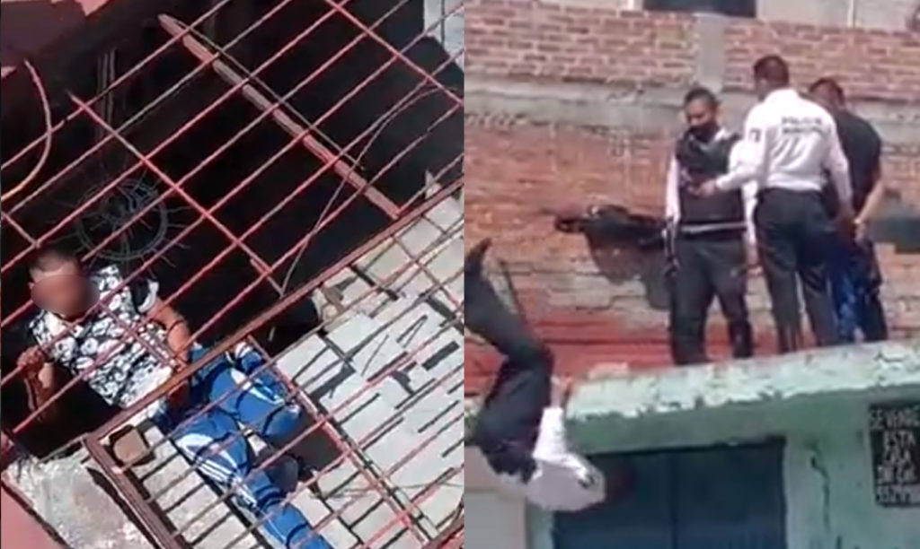 Tras sacarlo, los oficiales permanecen en la azotea con el detenido y uno de ellos, hace una maniobra de parkour para poder bajar y «cachar» al presunto ladrón y que no se diera a la fuga.